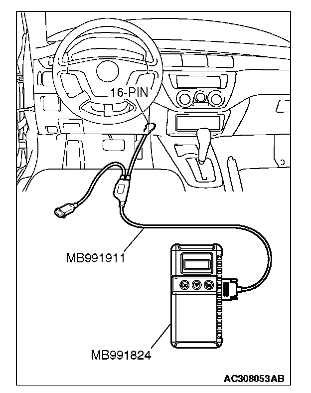 3. Connect special tool MB991824 (V.C.I.) to the data link connector.
