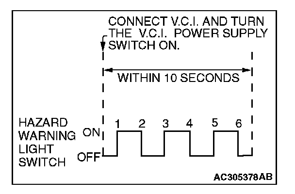 4. Within 10 seconds after turning the V.C.I. power supply switch to the "ON" position, push the hazard warning light switch six times.