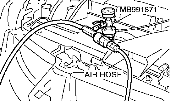 11. By referring to the section on coolant, select an appropriate concentration for safe operating temperature within the range of 30 to 60 %. Use special tool MB991871 to refill the coolant. A convenient mixture is a 50 % water and 50 % antifreeze solution [freezing point: -31°C (-32.8 OF)].