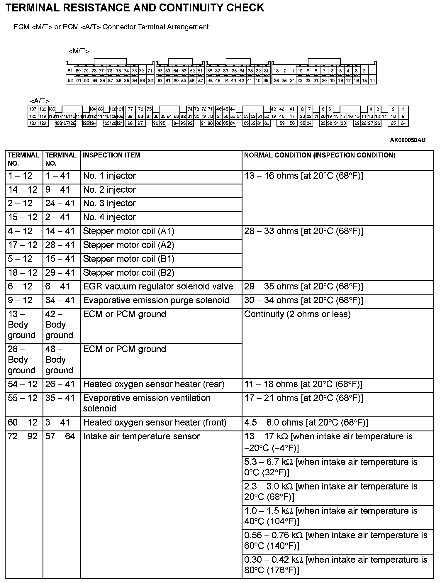 ECM <MT> Or PCM <AT> Connector Terminal Arrangement Part 1: