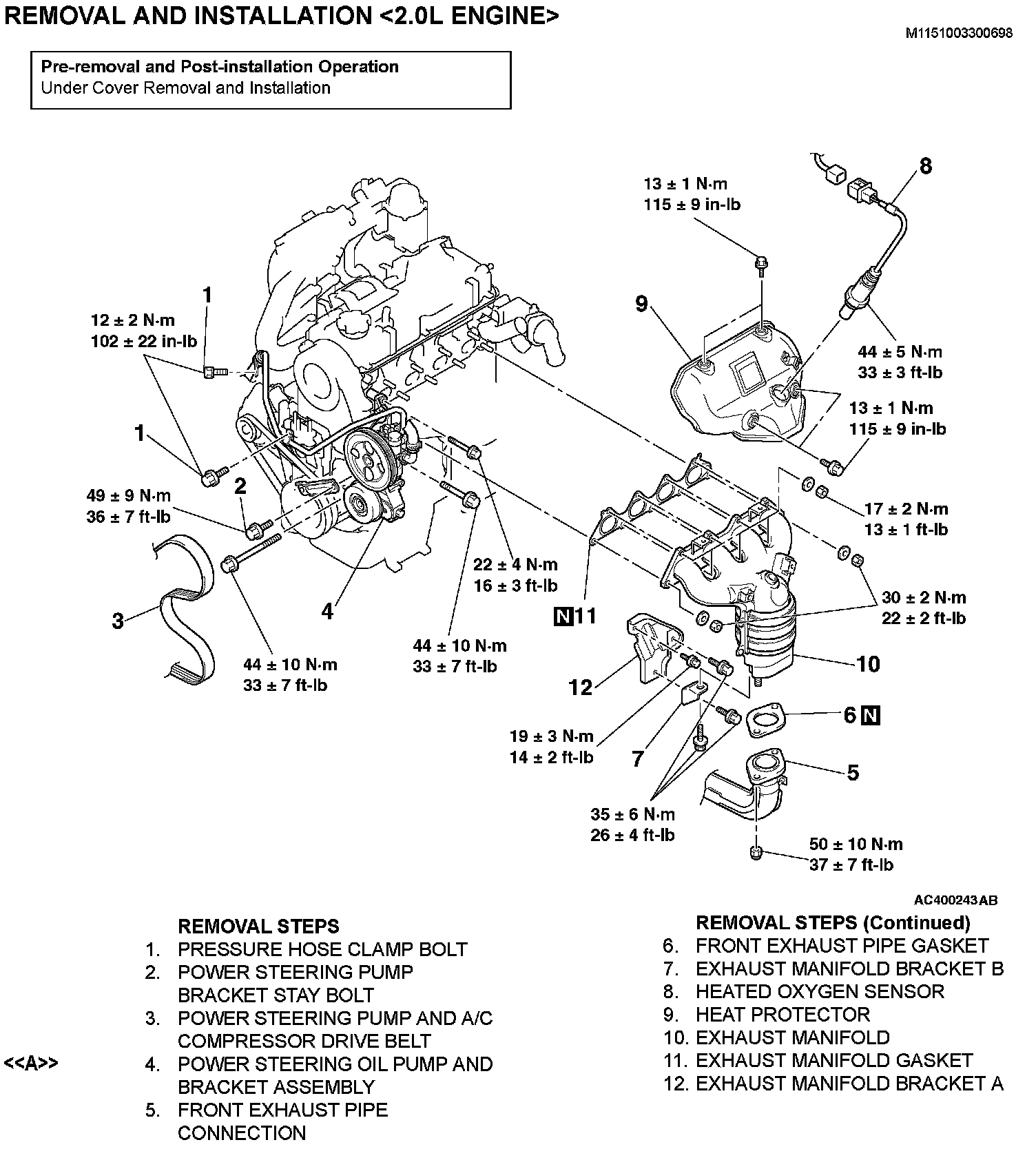 EXHAUST MANIFOLDRemoval And Installation <2.0L Engine>: