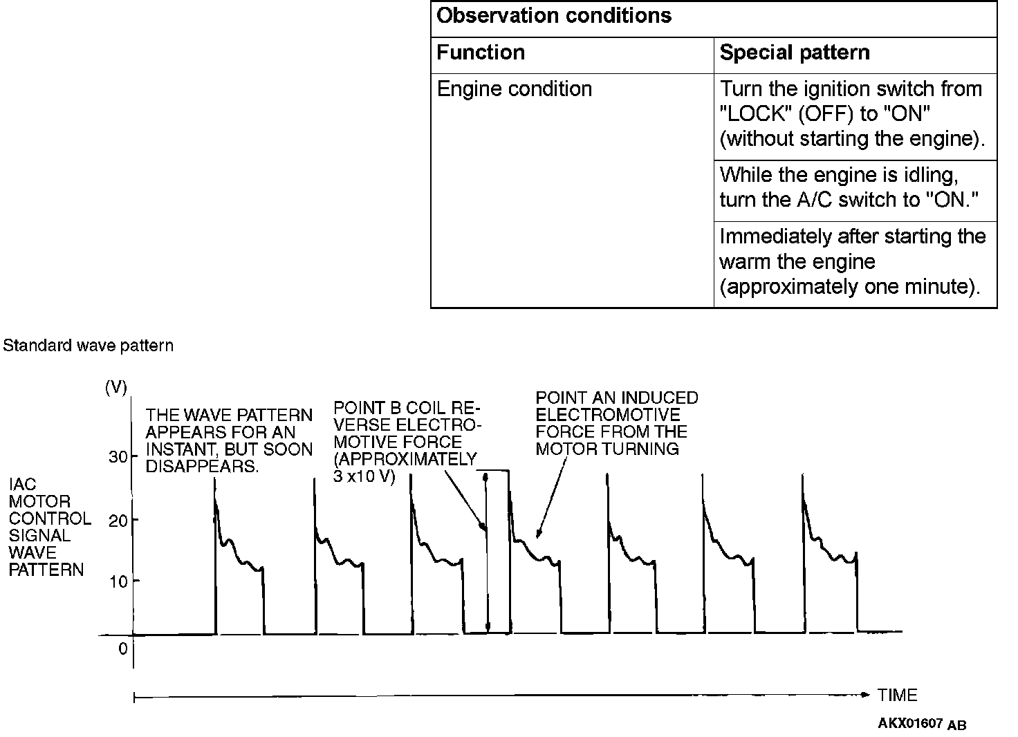 Check that the standard wave pattern appears when the idle air control motor is operating.