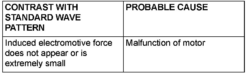 - Current is not supplied to the motor coil on the open circuit side. (Voltage does not drop to 0 volt.) Furthermore, the induced electromotive force wave pattern at the normal side is slightly different from the normal wave pattern.