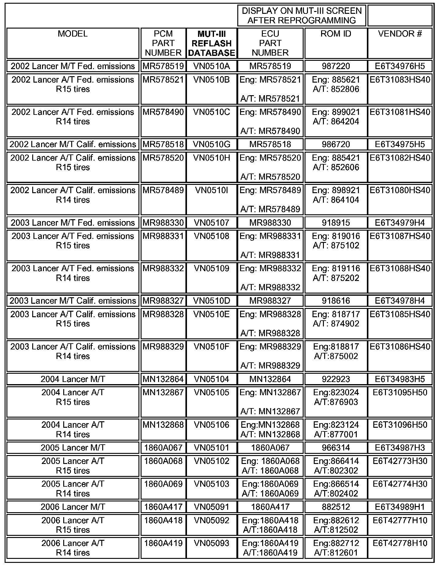 ^ If the ROM ID is the same as or higher than the ROM ID in the table, the PCM has been reprogrammed for this concern.