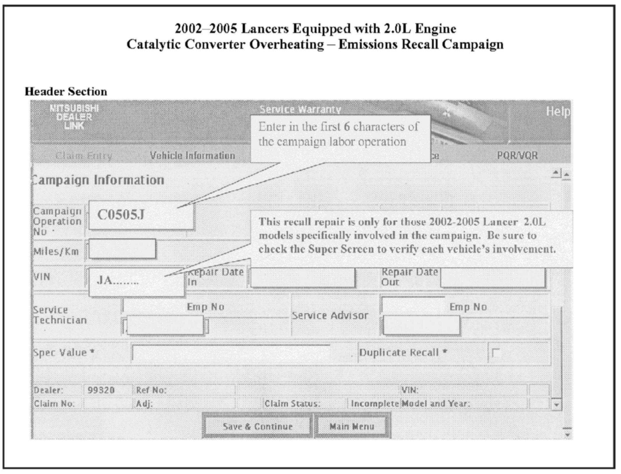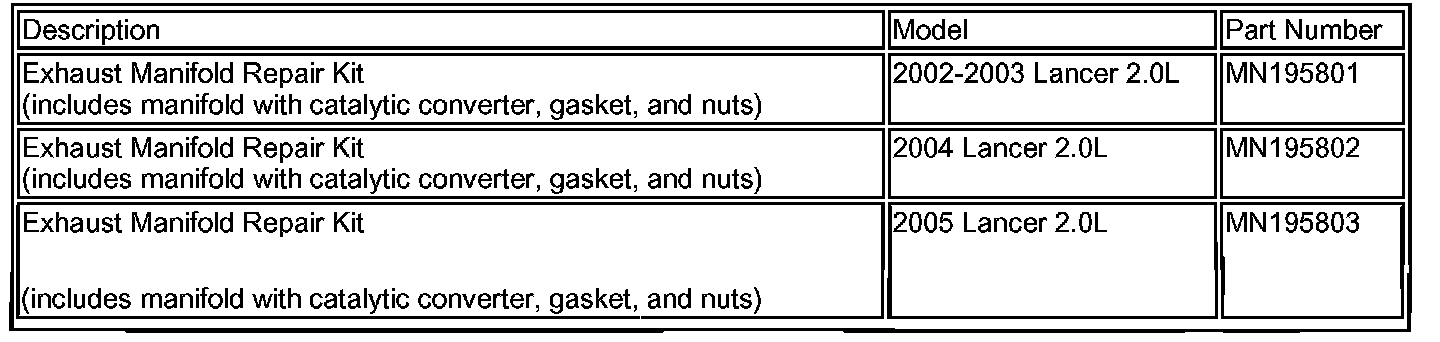 2002-2005 Lancer models equipped with 2.0L engine (approximately 195,000 vehicles)