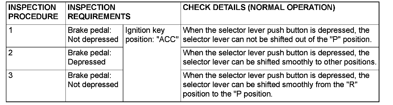 SHIFT LOCK MECHANISM CHECK
