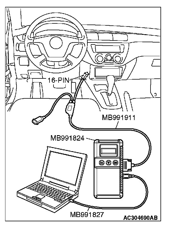 3. Connect special tool MB991827 to special tool MB991824 and the personal computer.