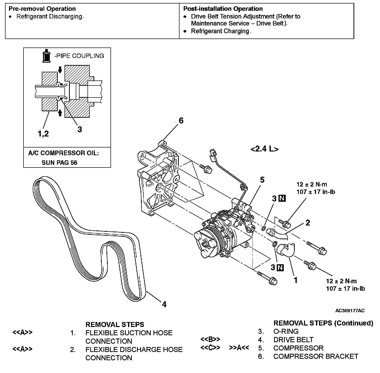 The following operations will be needed due to the introduction of the serpentine drive system with the drive belt auto-tensioner.