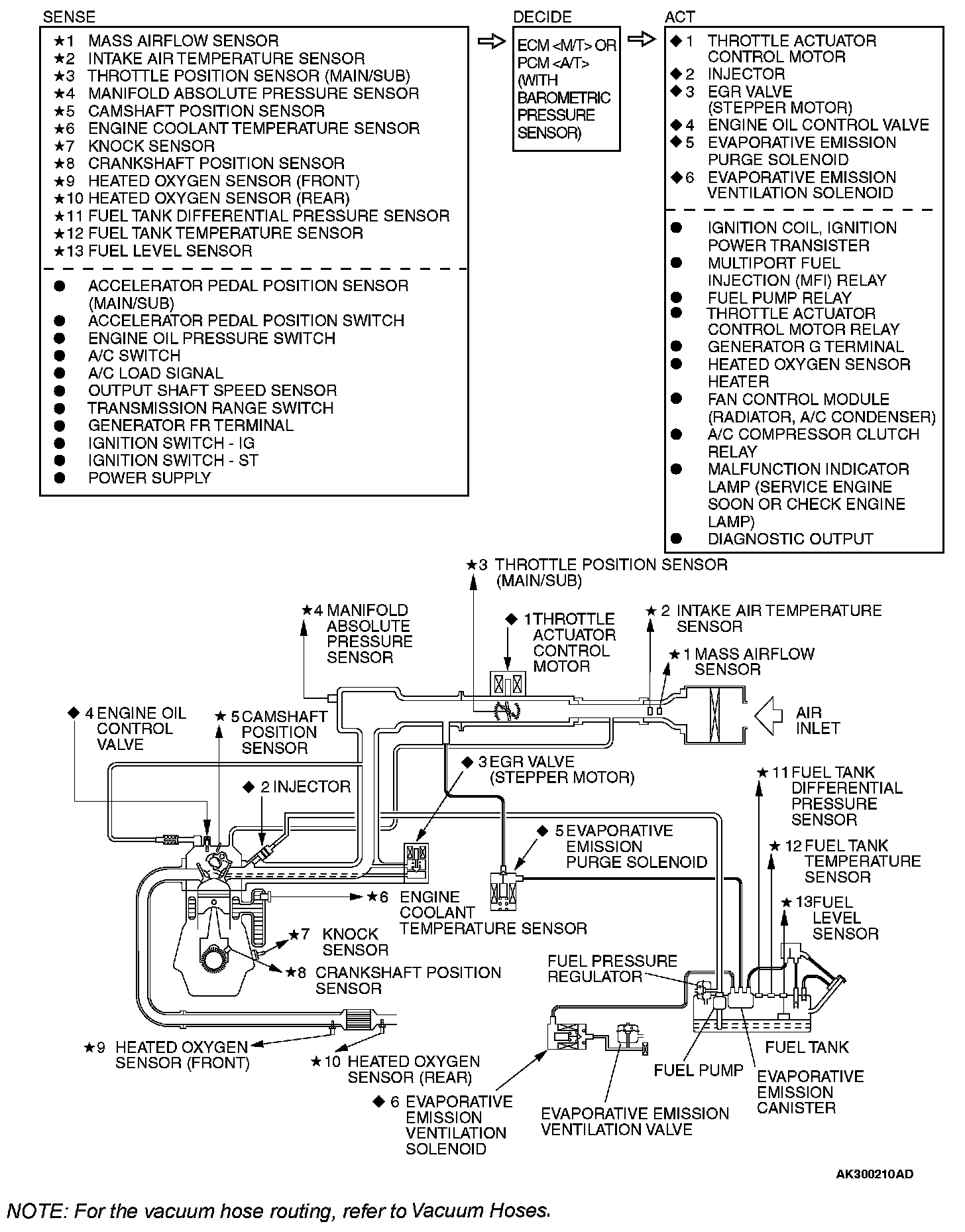 The Multiport Fuel Injection System consists of sensors, actuators and the engine control module (ECM)