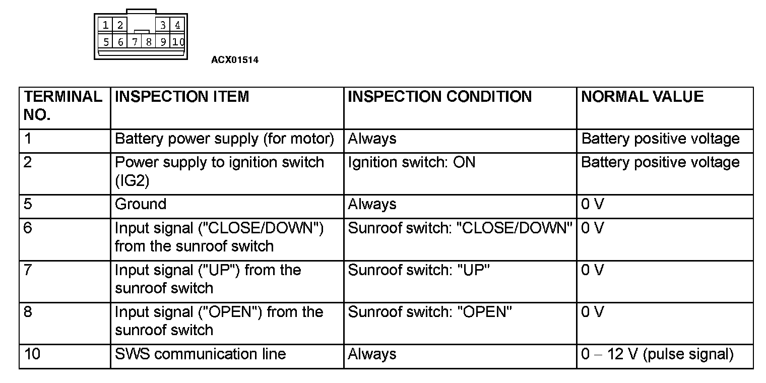 Check At ECU Terminal - Sunroof Motor Assembly: