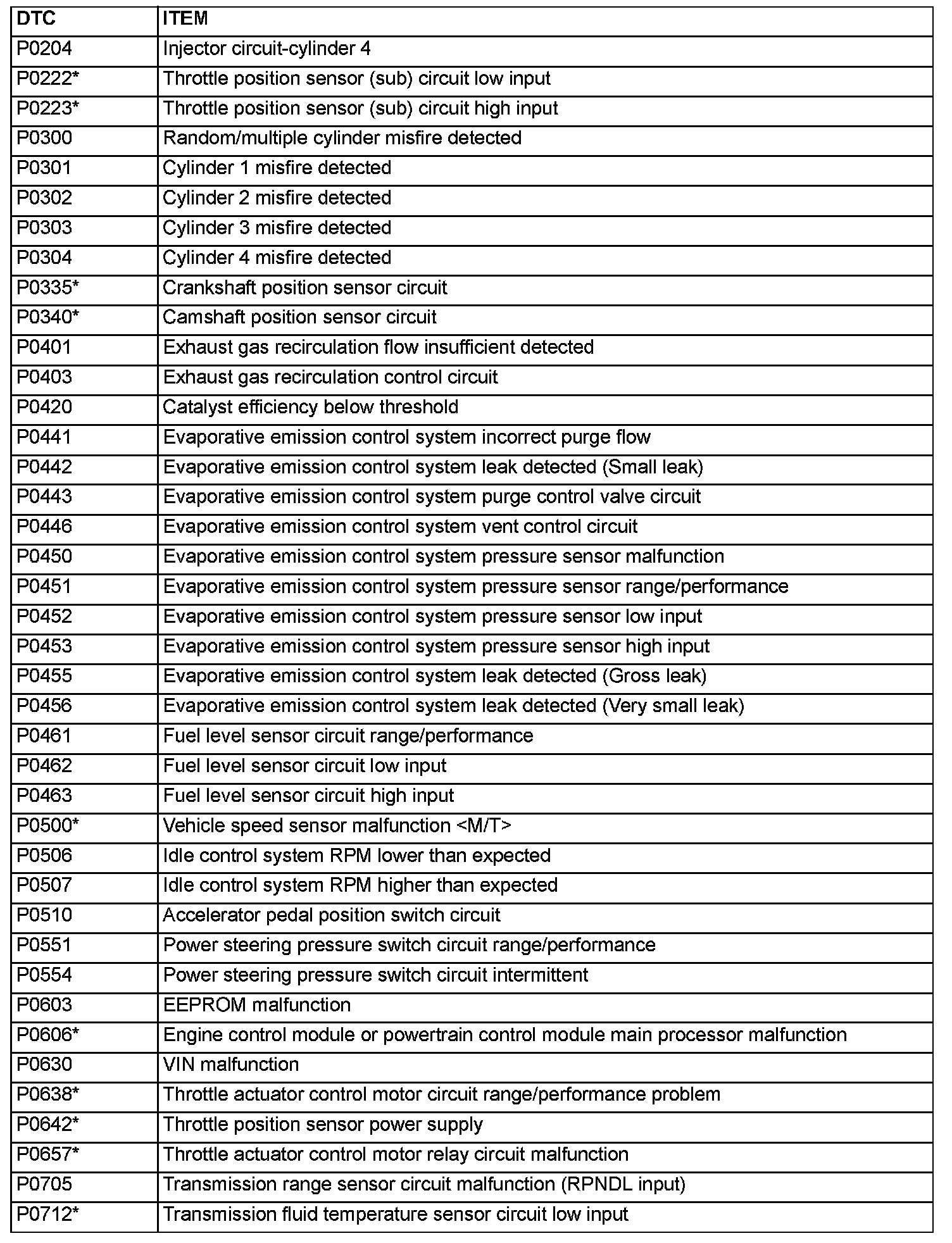 P0204 - P0712: