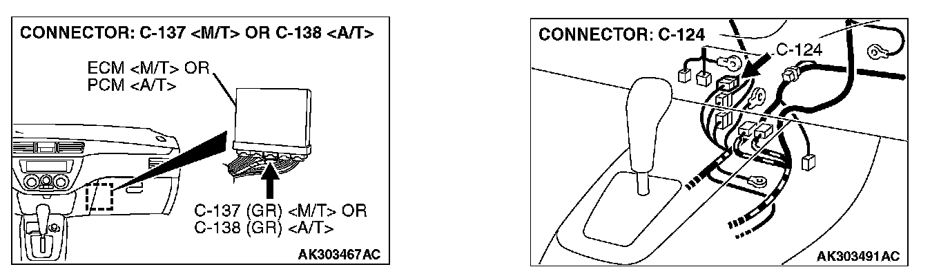 NOTE: Check harness after checking intermediate connectors C-101 and C-124. If intermediate connectors are damaged, repair or replace them. Refer to Harness Connector Inspection. Then check that the malfunction is eliminated.