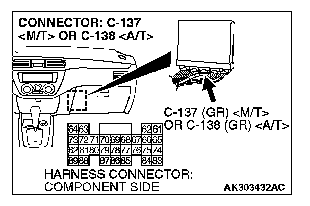 STEP 2. Check for open circuit, short circuit to ground and harness damage between data link connector C-14 (terminal No.7) and ECM connector C-137
