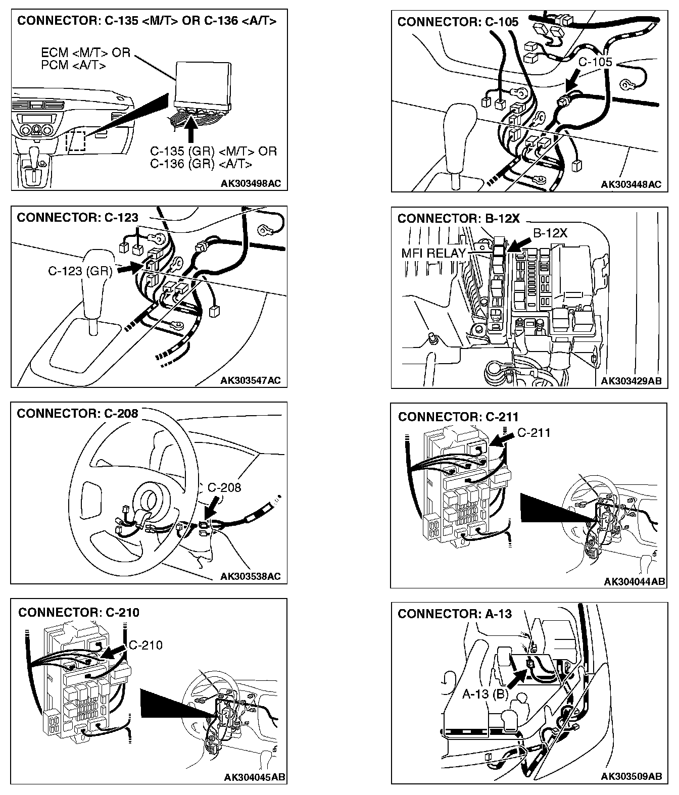 STEP 1. Check harness connector B-12X at MFI relay for damage.