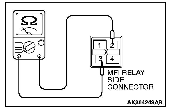 2. Check for continuity between the MFI relay terminal No.2 and No.3.
