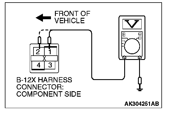 STEP 3. Measure the power supply voltage at MFI relay harness side connector B-12X.