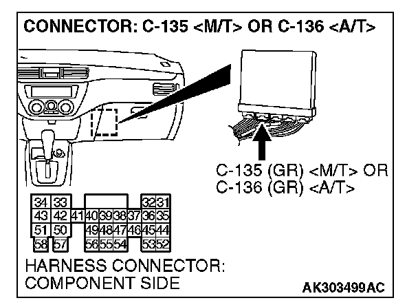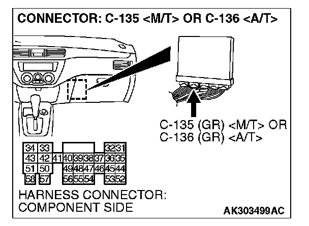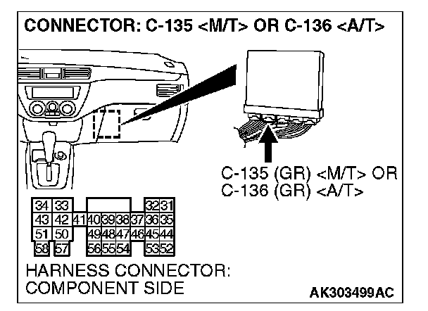 STEP 7. Check the continuity at ECM harness side connector C-135