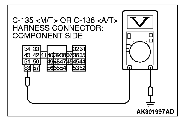 2. Measure the voltage between terminal No.58 and ground.