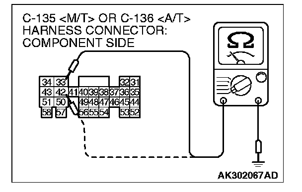 2. Check for the continuity between terminals (No.33, No.42) and ground.