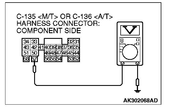 2. Measure the voltage between terminal No.57 and ground.