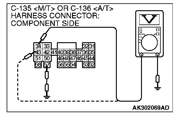 3. Measure the voltage between terminals (No.34, No.43) and ground.