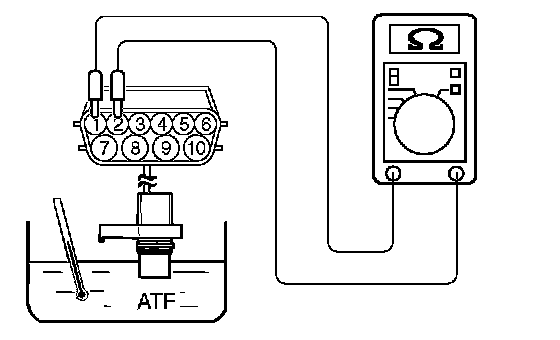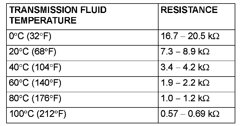 3. If the transmission fluid temperature sensor resistance is outside the specified range, replace the transmission fluid temperature sensor.