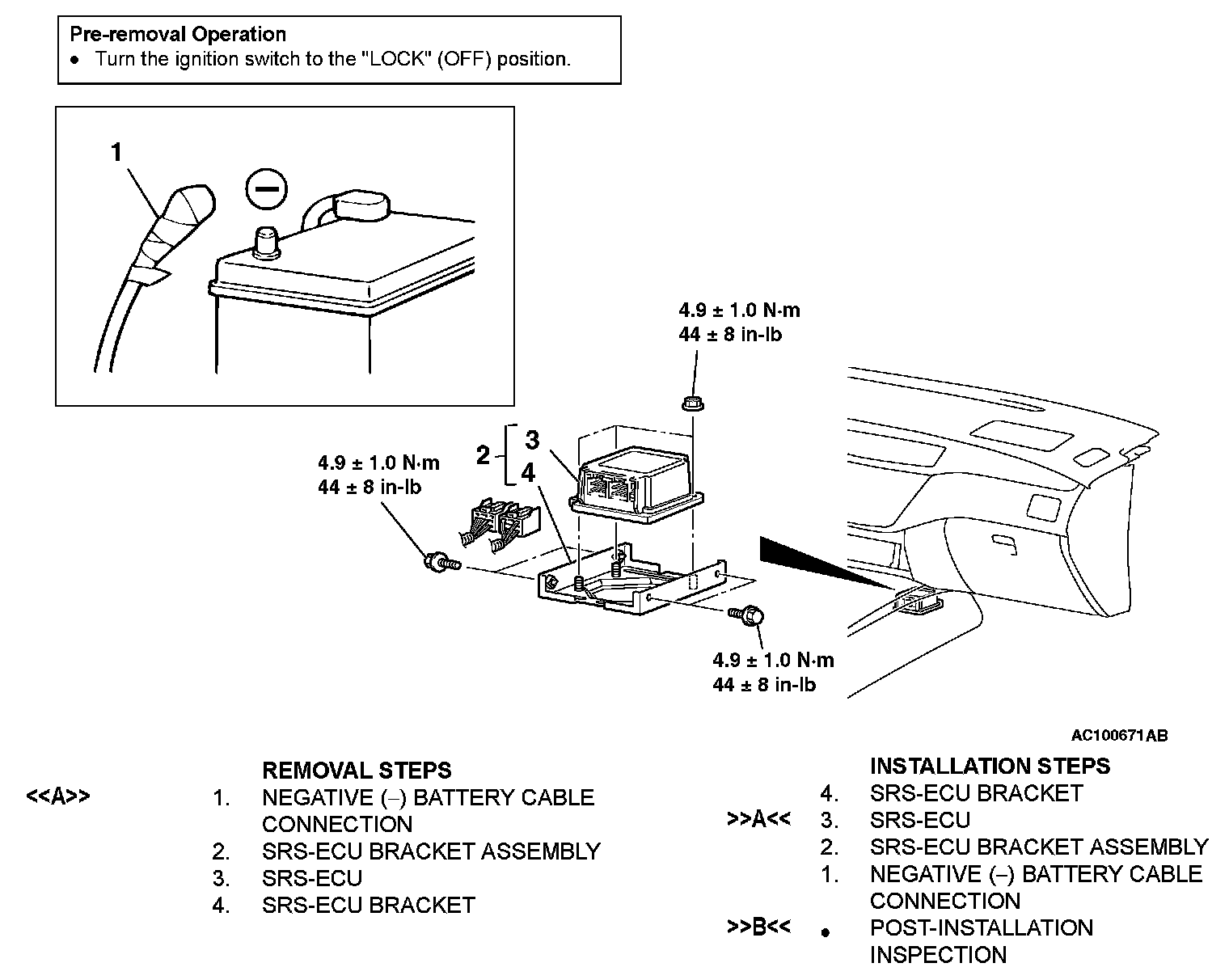 WARNING: The SRS may not activate if the SRS-ECU is not installed properly, which could result in serious injury or death to the vehicle's driver or front passenger.