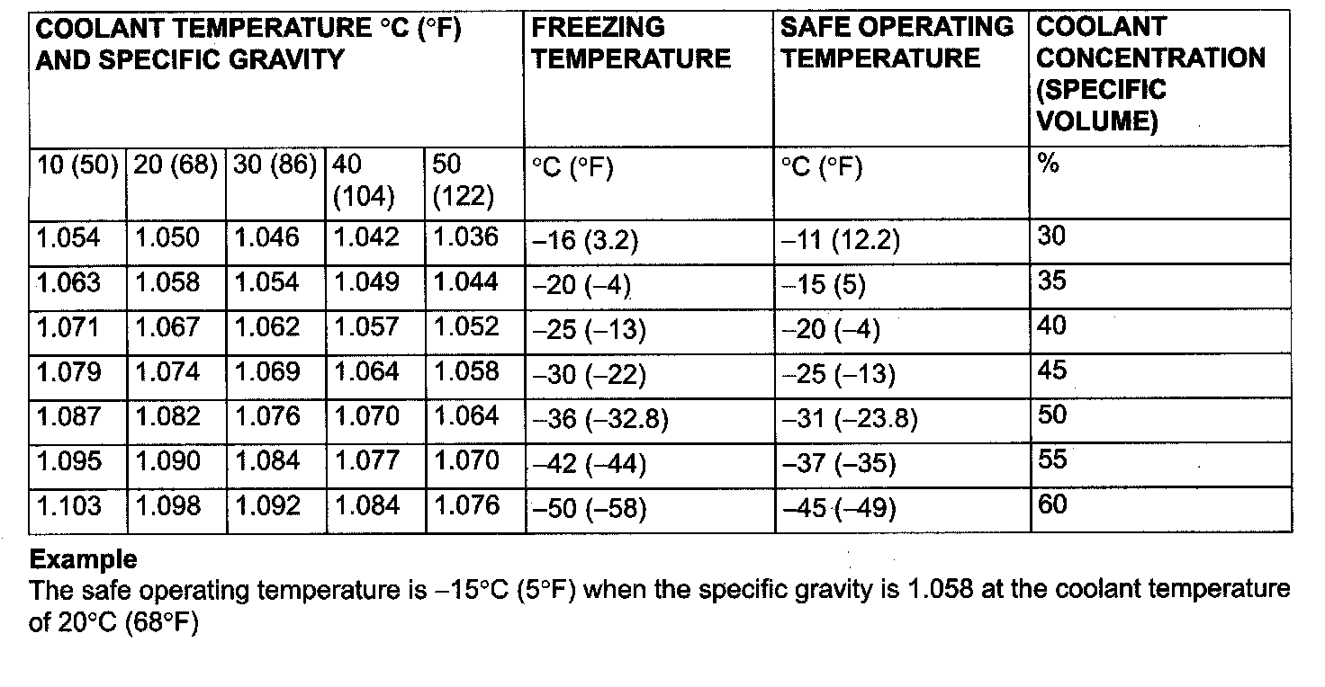 - If the concentration of the coolant is below 30%, the anti-corrosion property will be adversely affected. In addition, if the concentration is above 60%, both the anti-freeze and engine cooling properties will decrease, affecting the engine adversely. For these reasons, be sure to maintain the concentration level within the specified range.