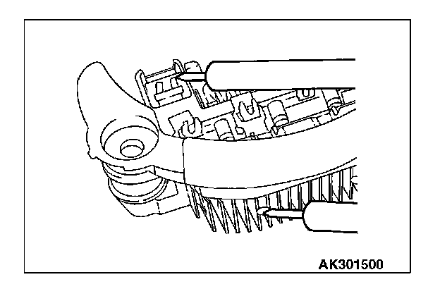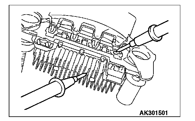 3. Check for continuity of the three diodes by connecting an ohmmeter to both ends of each diode. If there is continuity between the directions, or if there is no continuity, the diode is damaged, so replace the rectifier.