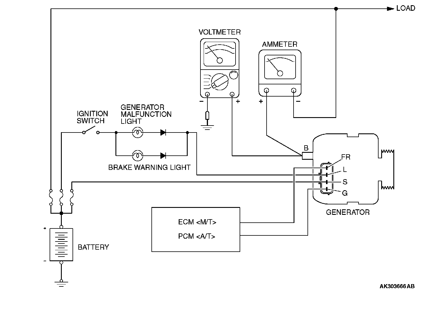 NOTE:. If the electrical load is small while testing, the specified level of current may not be output even though the generator is normal. In such cases, increase the electrical load by leaving the headlights turned on for some time to discharge the battery or by using the lighting system in another vehicle, and then test again.