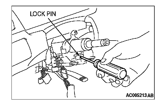2. Insert the locking pin with a small cross-tipped screwdriver, etc., and remove the steering lock cylinder.