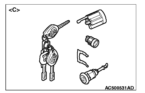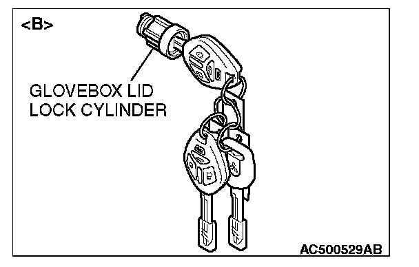 - Do not register the ignition keys other than the ignition key that starts the engine. (When replacing by the door lock key cylinder of illustration or the glove box lid lock cylinder of illustration , the engine cannot start if the encrypted code is registered with the bar code on the ignition key supplied simultaneously. If the ignition key using for each lock cylinder and starting engine is used as a common ignition key, replace by the key set of illustration