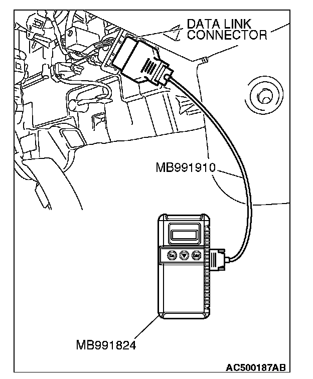 3. Connect special tool MB991824 (V.C.I.) to the data link connector.