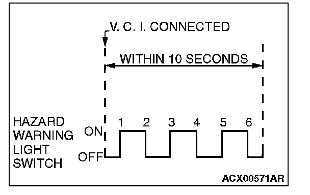 NOTE: When the hazard warning light switch has been pressed six times, the ETACS-ECU locks and unlocks the doors automatically once. The ETACS-ECU is ready to register an encrypted code.