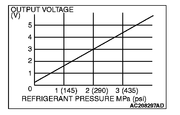 4. At this time, check to see that the voltage of A/C pressure sensor terminal No. 2 reflects the specifications of the figure.