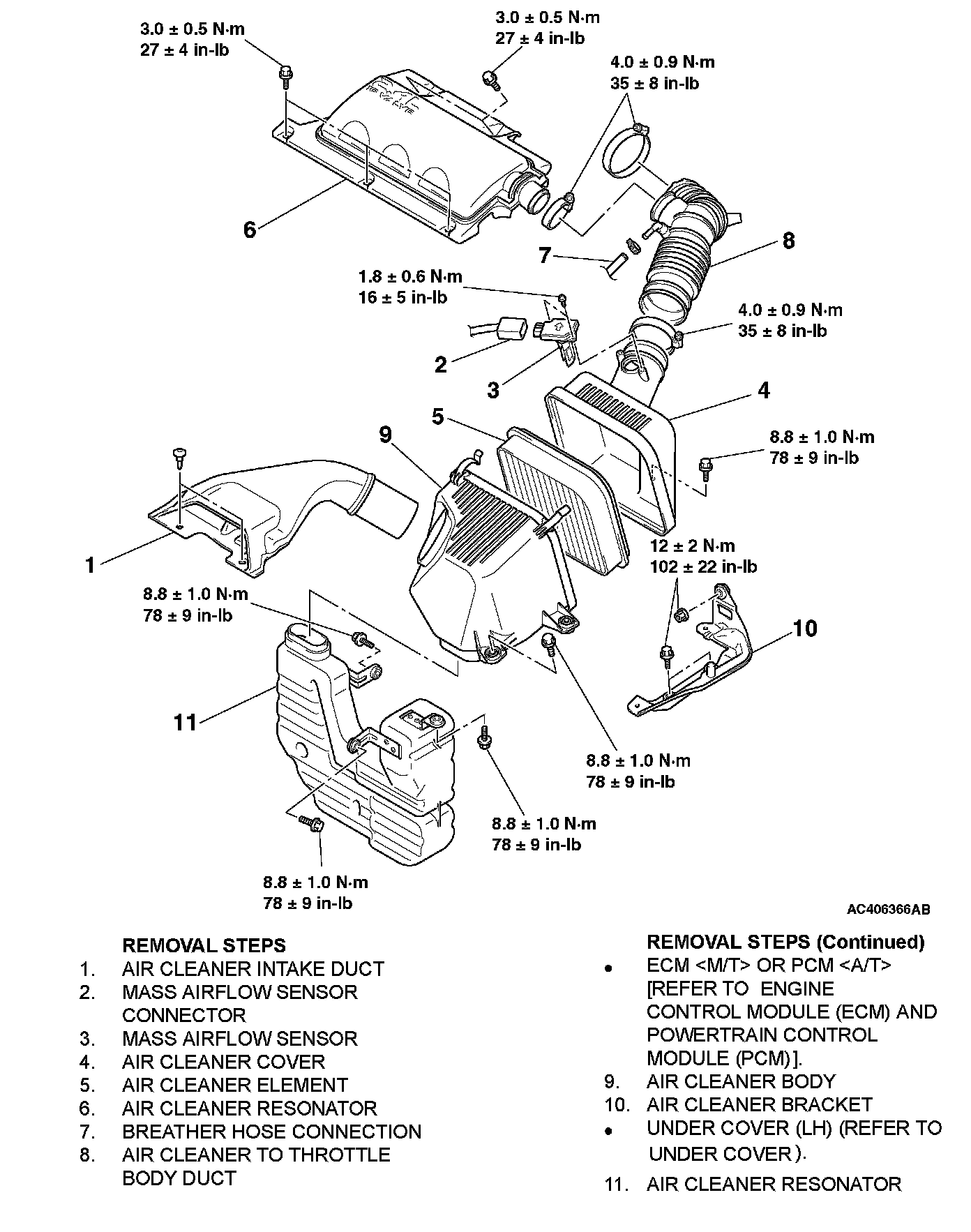 Removal Steps 1 - 11:
