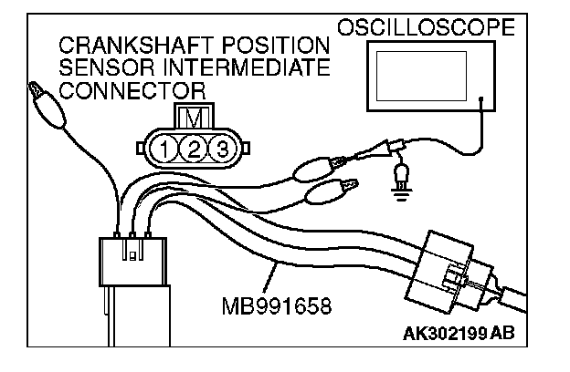 3. Disconnect the crankshaft position sensor intermediate connector, and connect the test harness special tool (MB991658) between the separated connector.