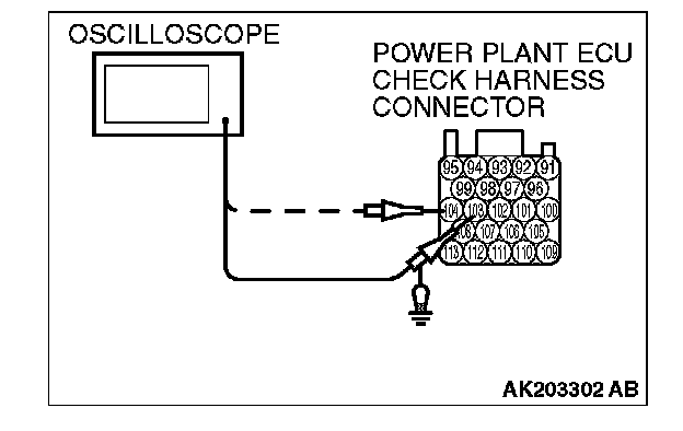 3. Connect the oscilloscope to check harness terminal No. 103. (Check the crankshaft position sensor signal wave pattern.)