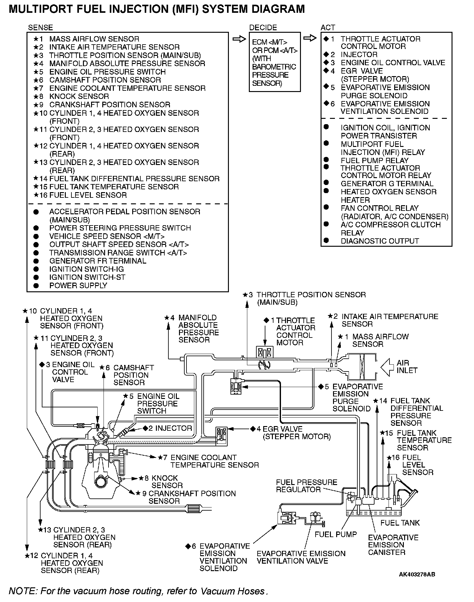 The Multiport Fuel Injection System consists of sensors, actuators and the engine control module (ECM)
