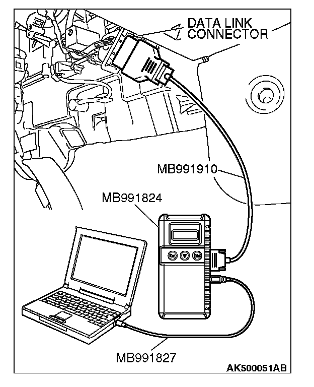 1. Connect scan tool MB991958 to the data link connector.