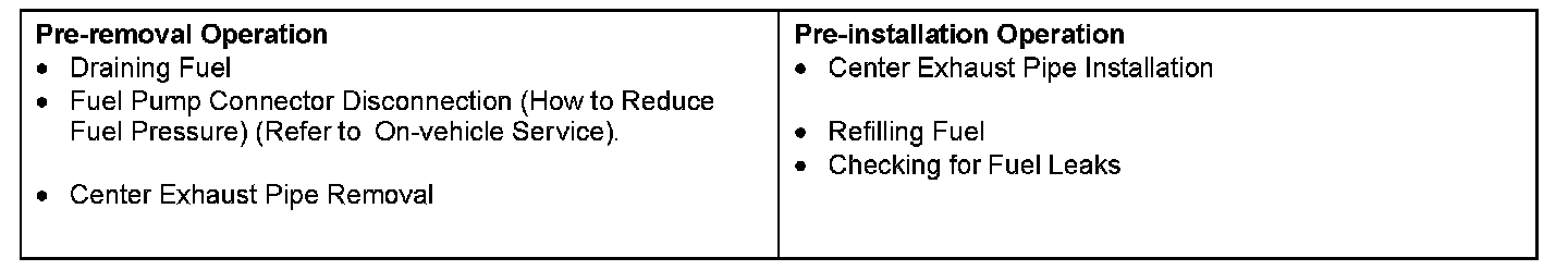 1. Drain the fuel remaining in the fuel pump module while removing the fuel pump module from the service hole.