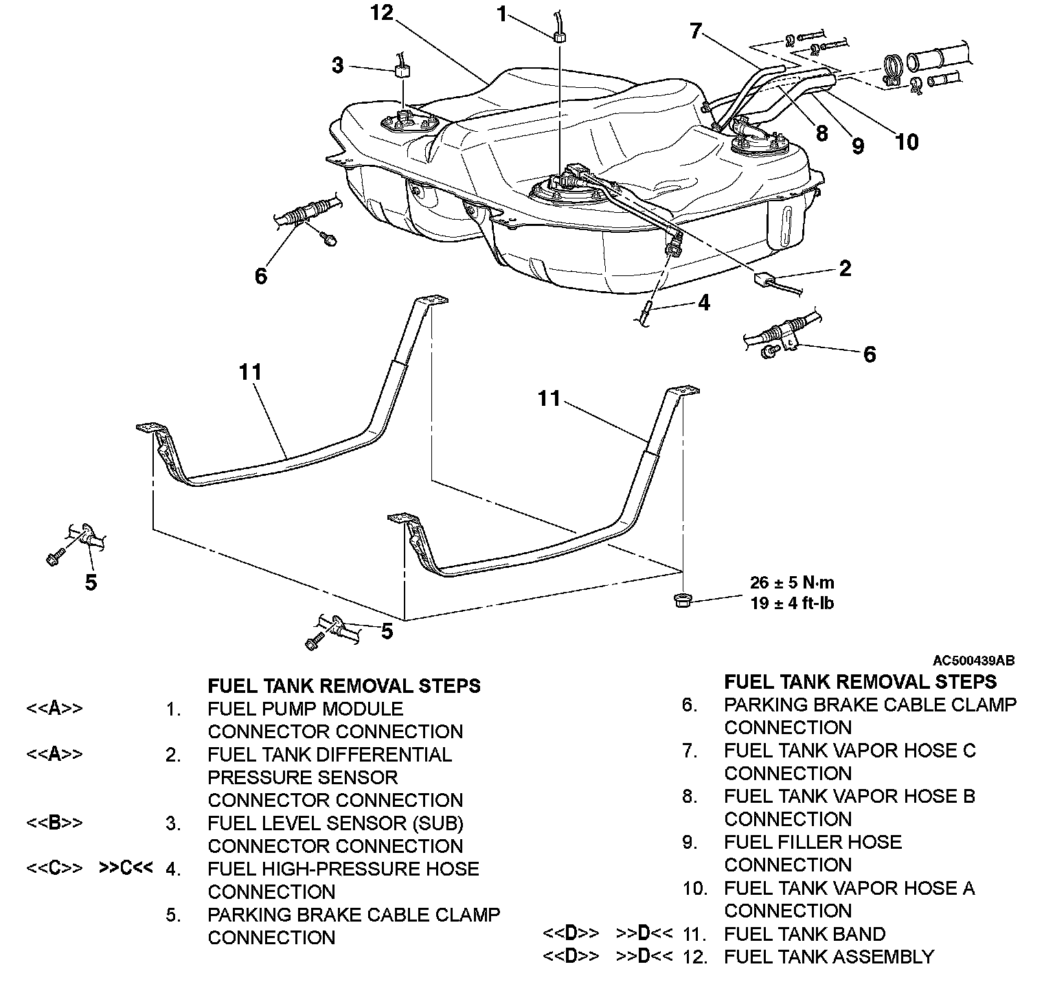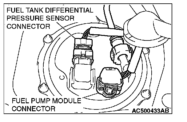 <> FUEL PUMP MODULE CONNECTOR/FUEL TANK DIFFERENTIAL PRESSURE SENSOR CONNECTOR DISCONNECTION