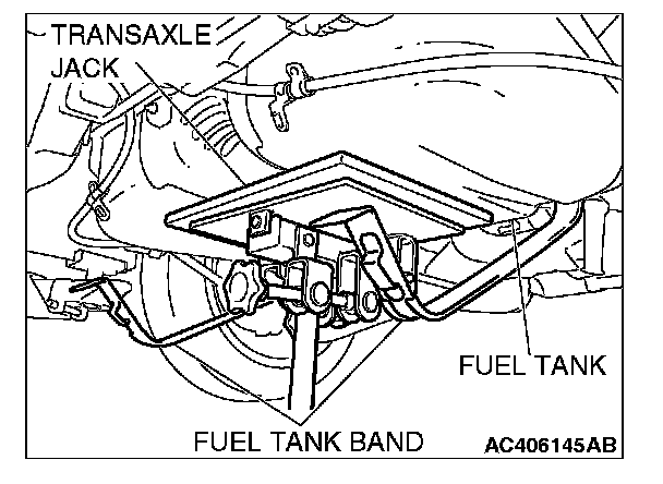 1. Raise the fuel tank assembly carefully with a transaxle jack.