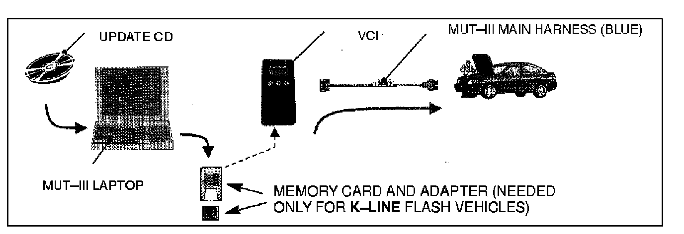 - If it is not, verify that the correct database update is in the MUT-III. On K-Line vehicles, verify the correct database was transferred to the memory card, and that the memory card is properly installed in the VCI.