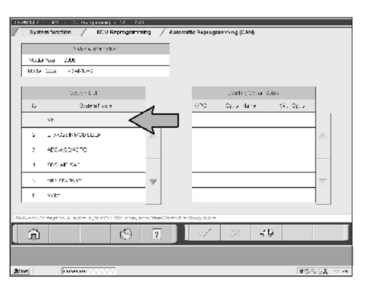 2.CAN-Flash Vehicles Only: In the MUT-III System Select menu, click on the car symbol at the bottom of the screen.