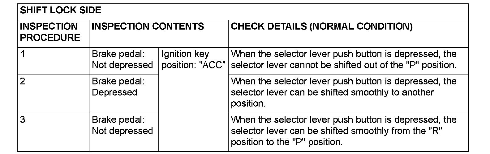KEY INTERLOCK AND SHIFT LOCK MECHANISM CHECKINSPECTION PROCEDURES 1-4: