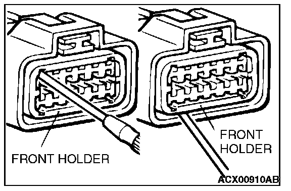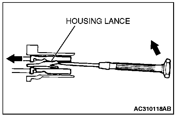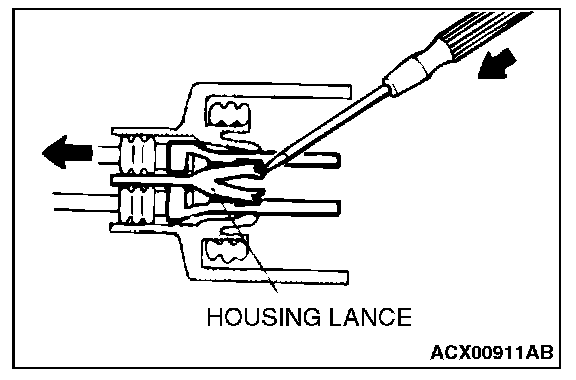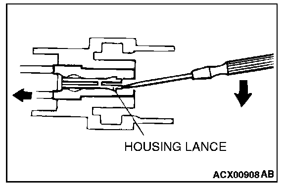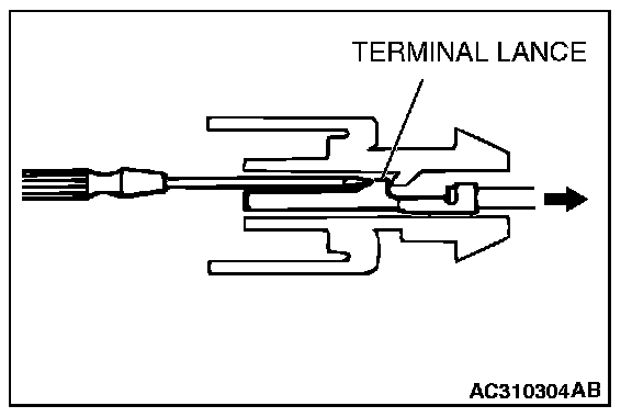 Loosely engaged terminals can be repaired by removing the female terminal from the connector housing and raising its lance to establish better engagement. Removal of the connector terminal used for MFI and INVECS-II A/T control circuit can be done in the following manner.