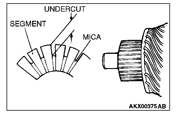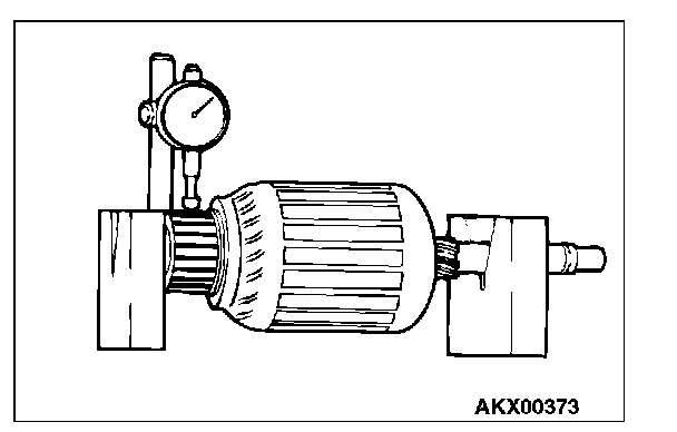 COMMUTATOR CHECK1. Place the armature on a pair of V-blocks, and check the deflection by using a dial gauge.