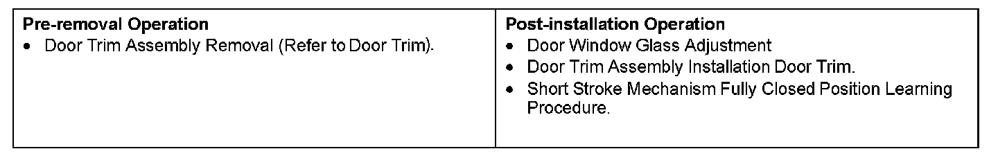 DOOR GLASS AND REGULATORPre-removal & Post-installation Operation: