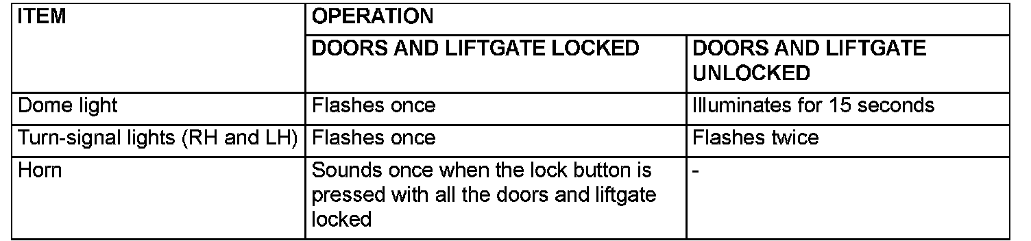 - When the transmitter unlock button is pressed once, the driver's door will be unlocked. If the button is pressed twice, all the doors and liftgate will be unlocked.